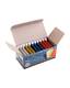 Farebné kriedy sú balené po 10 kusoch v papierovej krabičke. Farby: biela, modrá, žltá, červená